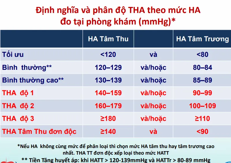 Theo Tổ chức Y tế Thế giới và Hội Tăng Huyết Áp Thế Giới (WHO/ISH) năm 1999, tăng huyết áp động mạch ở người trưởng thành được xác định khi huyết áp tâm thu lớn hơn hoặc bằng 140 mmHg và/hoặc huyết áp tâm trương lớn hơn hoặc bằng 90 mmHg. (Nguồn: https://www.ahajournals.org/doi/full/10.1161/01.hyp.34.5.838)