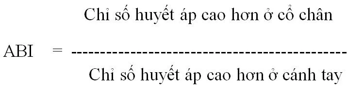 Công thức: ABI = Huyết áp tâm thu cổ chân / Huyết áp tâm thu cánh tay