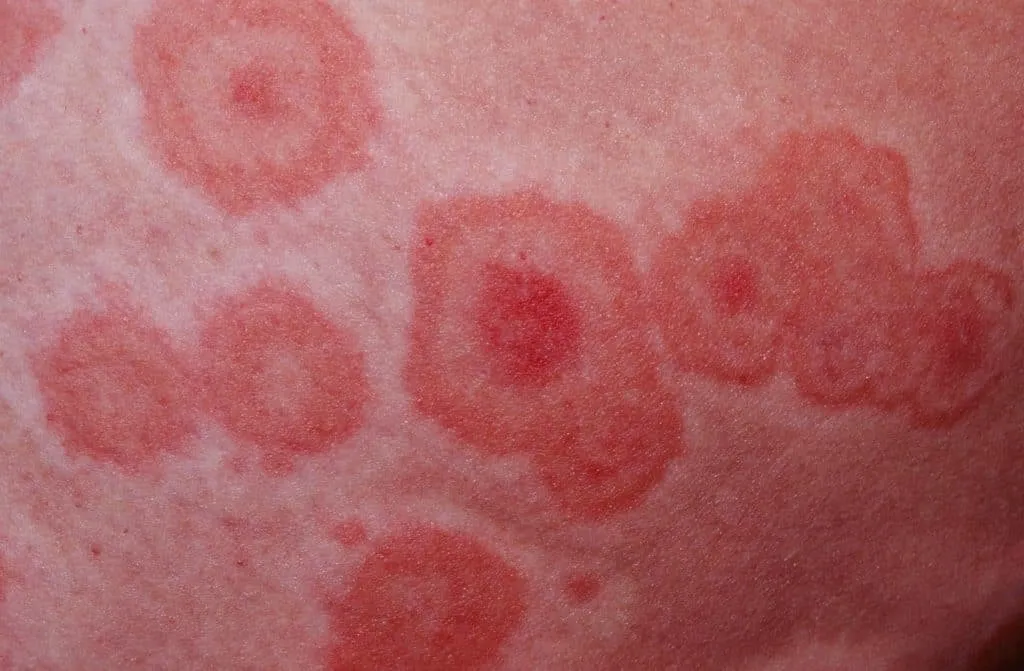 - Hồng ban vòng: Là các ban đỏ hình vòng, không ngứa, thường xuất hiện trên thân mình hoặc các chi.