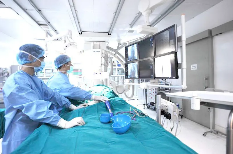 - Chọc mạch và đưa ống thông: Các dây thông điện cực sẽ được đưa vào buồng tim thông qua các vị trí chọc mạch.